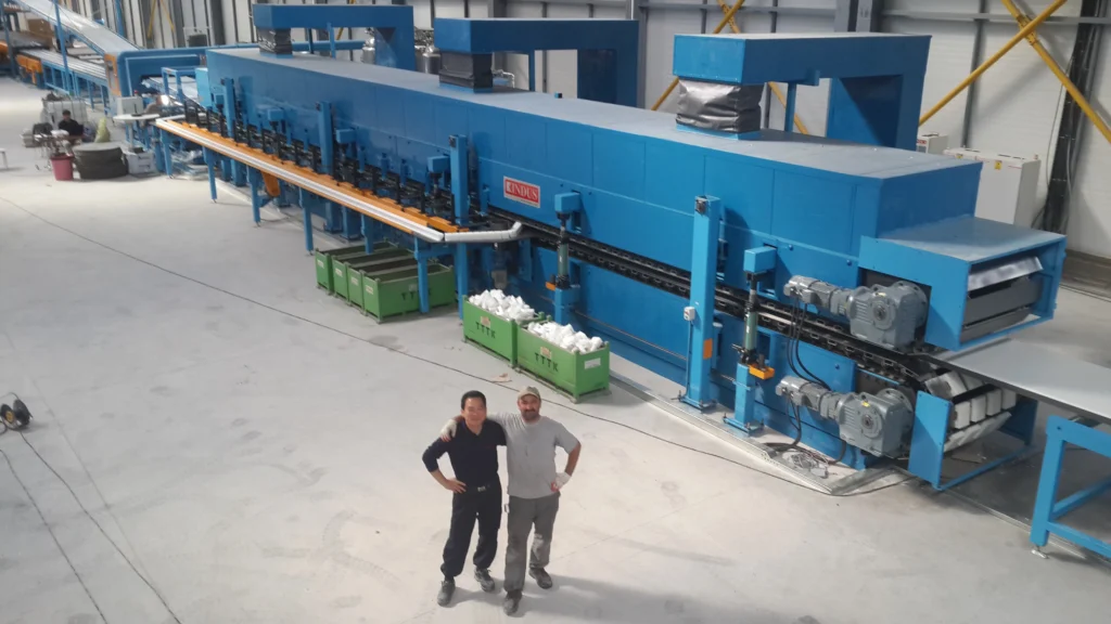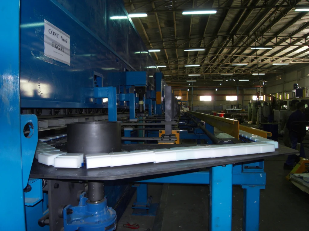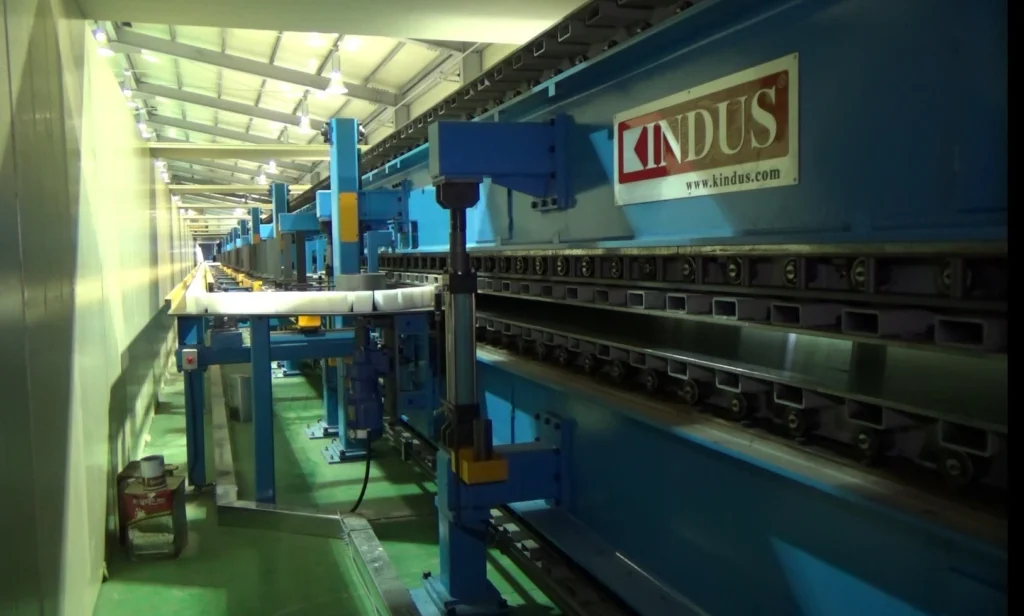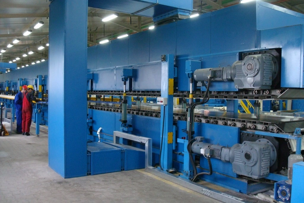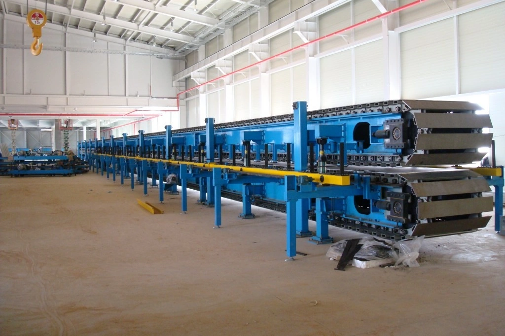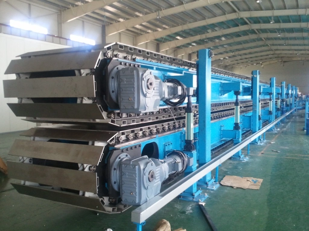 Caterpillar system is a main part of the whole sandwich panel production line and the production speed will be decided according to its length.